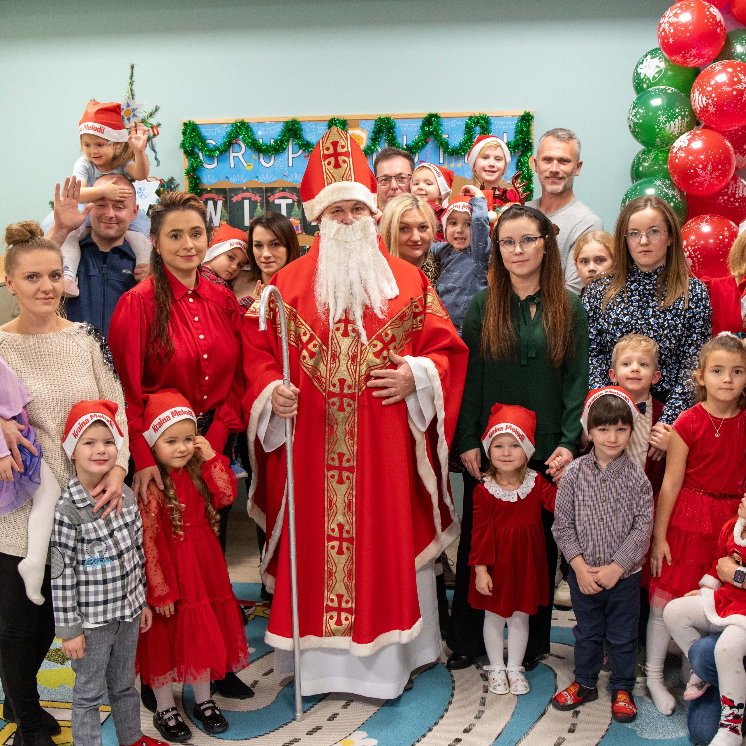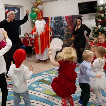 To był wyjątkowy dzień dla Nutek – pełen radości i świątecznej atmosfery. Do przedszkola zawitał bowiem upragniony gość – św. Mikołaj. Wizycie towarzyszyły także animacje. Dzieci brały udział w zabawach tanecznych, wspólnych pląsach i aktywnościach ruchowych, które sprawiły, że na twarzach wszystkich wychowanków pojawiły się szerokie uśmiechy.
