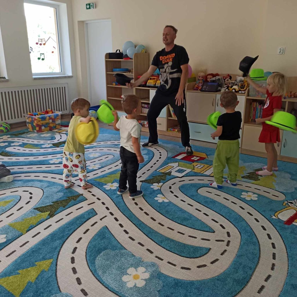 Minął już miesiąc działalności naszego przedszkola.W tym czasie poza cyklicznymi zajęciami muzycznymi, tanecznymi, językiem ang. i religią obchodziliśmy Dzień Przedszkolaka, Dzień Chłopaka oraz odbyło się spotkanie z Panem Strażakiem i próbna ewakuacja przeciwpożarowa. Nasze Wesołe Nutki pięknie zaadaptowały się i chętniej uczestniczą w zabawach oraz proponowanych zajęciach. Dodatkowo udało się dostosować niewielki plac zabaw, gdzie Nutki mogą spędzać czas na świeżym powietrzu.