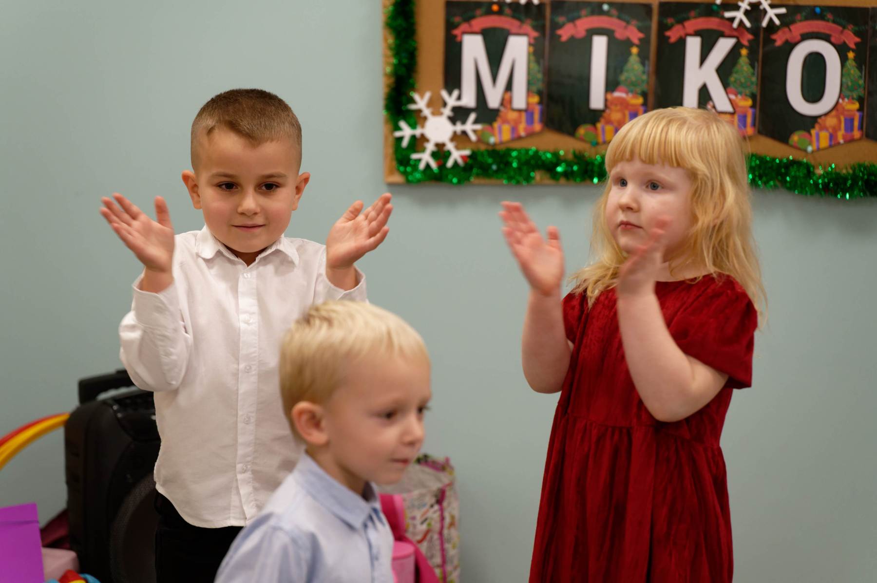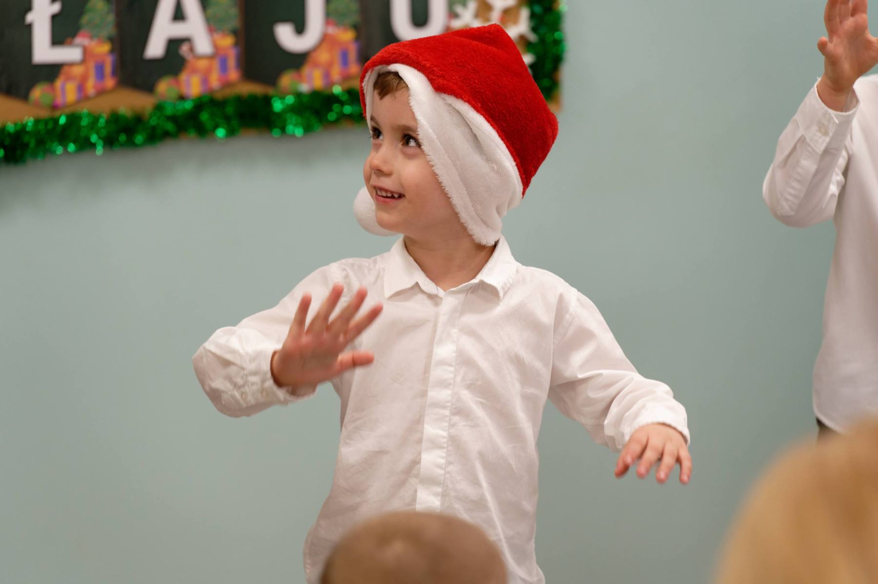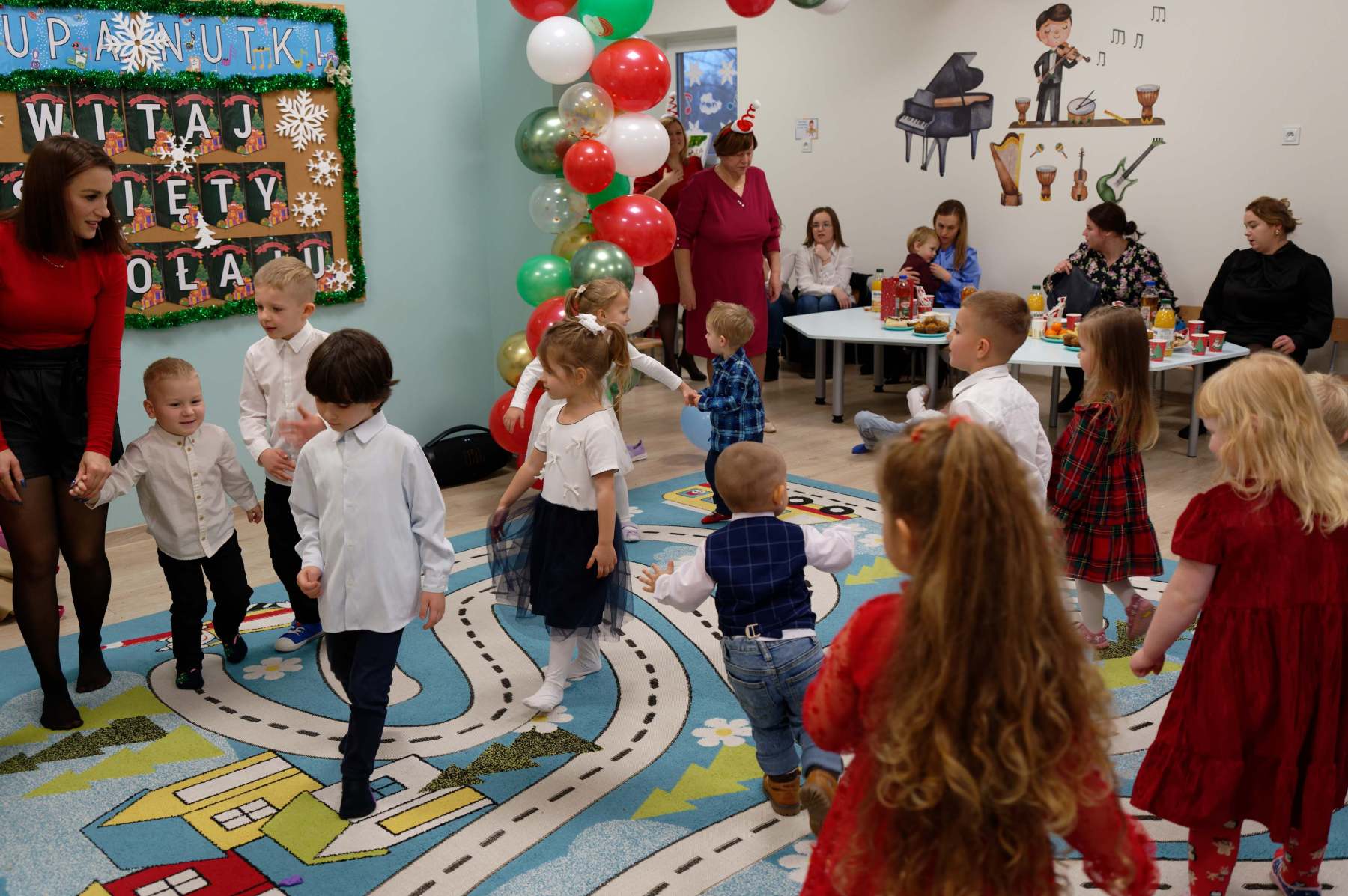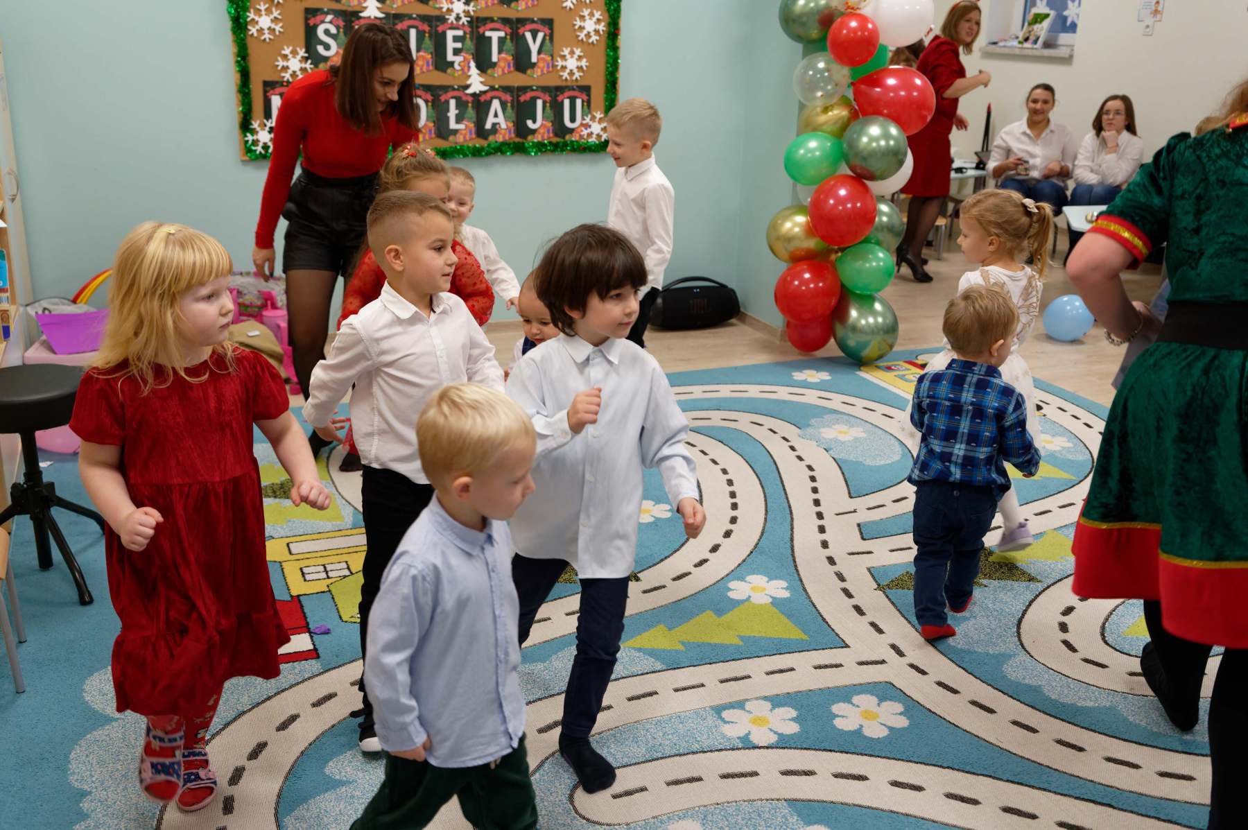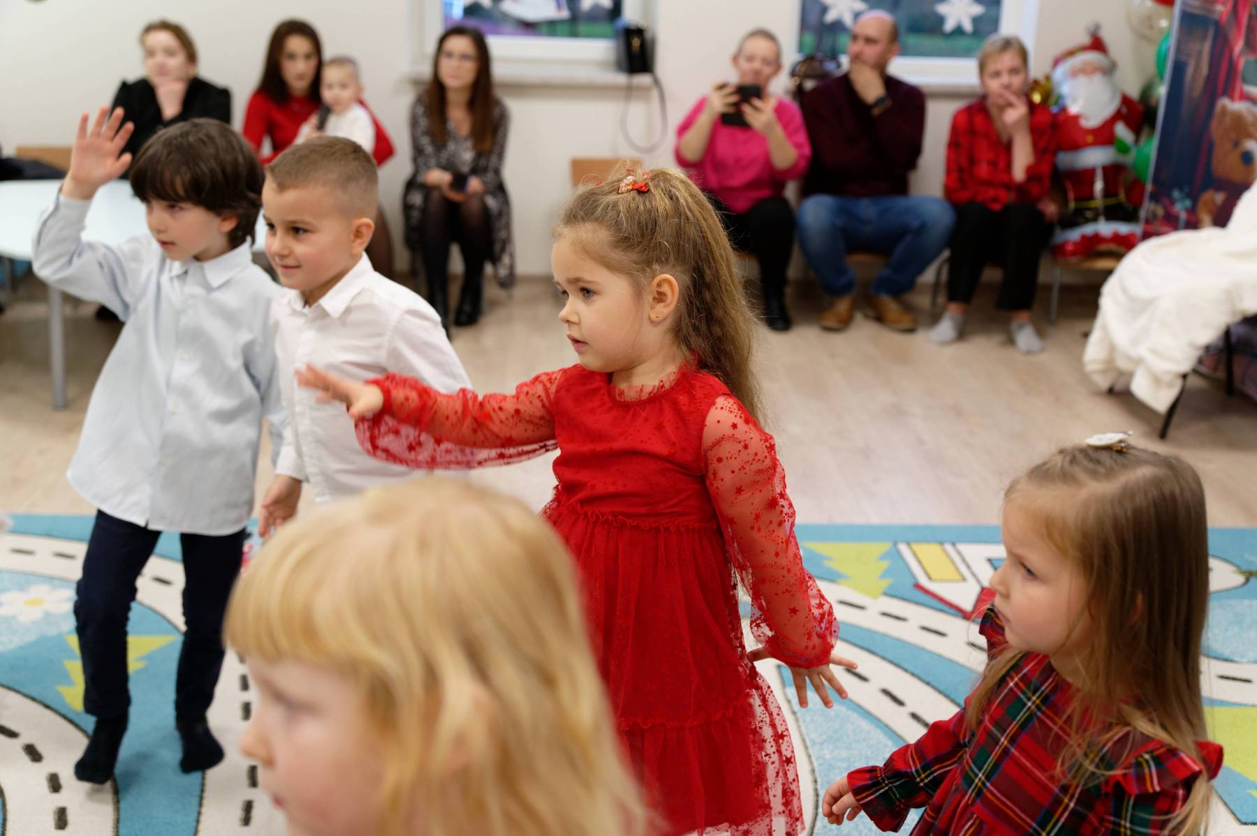 To był wyjątkowy dzień dla Nutek – pełen radości i świątecznej atmosfery. Do przedszkola zawitał bowiem upragniony gość – św. Mikołaj. Wizycie towarzyszyły także animacje. Dzieci brały udział w zabawach tanecznych, wspólnych pląsach i aktywnościach ruchowych, które sprawiły, że na twarzach wszystkich wychowanków pojawiły się szerokie uśmiechy.
