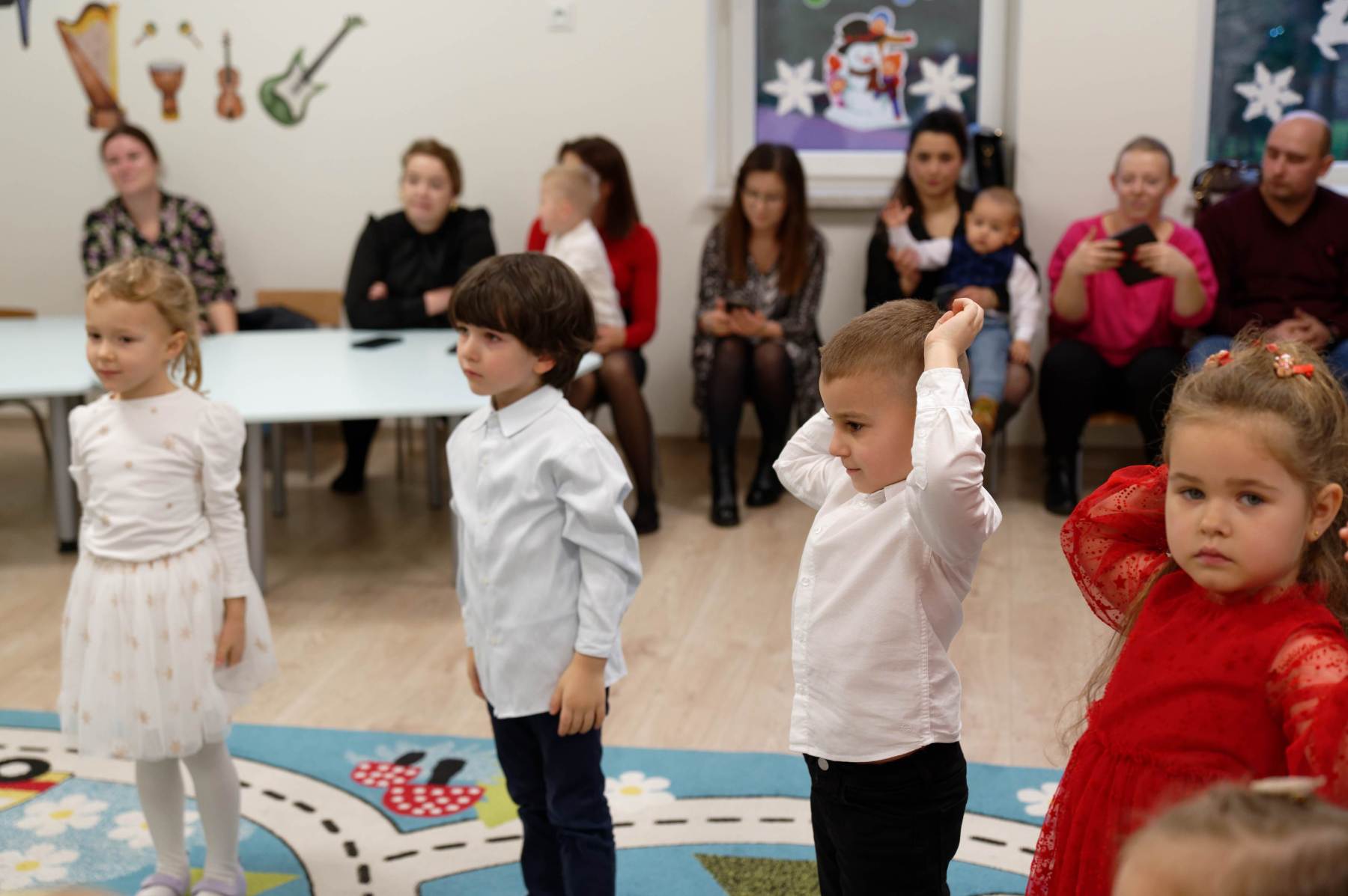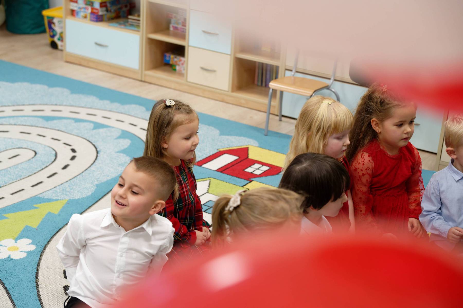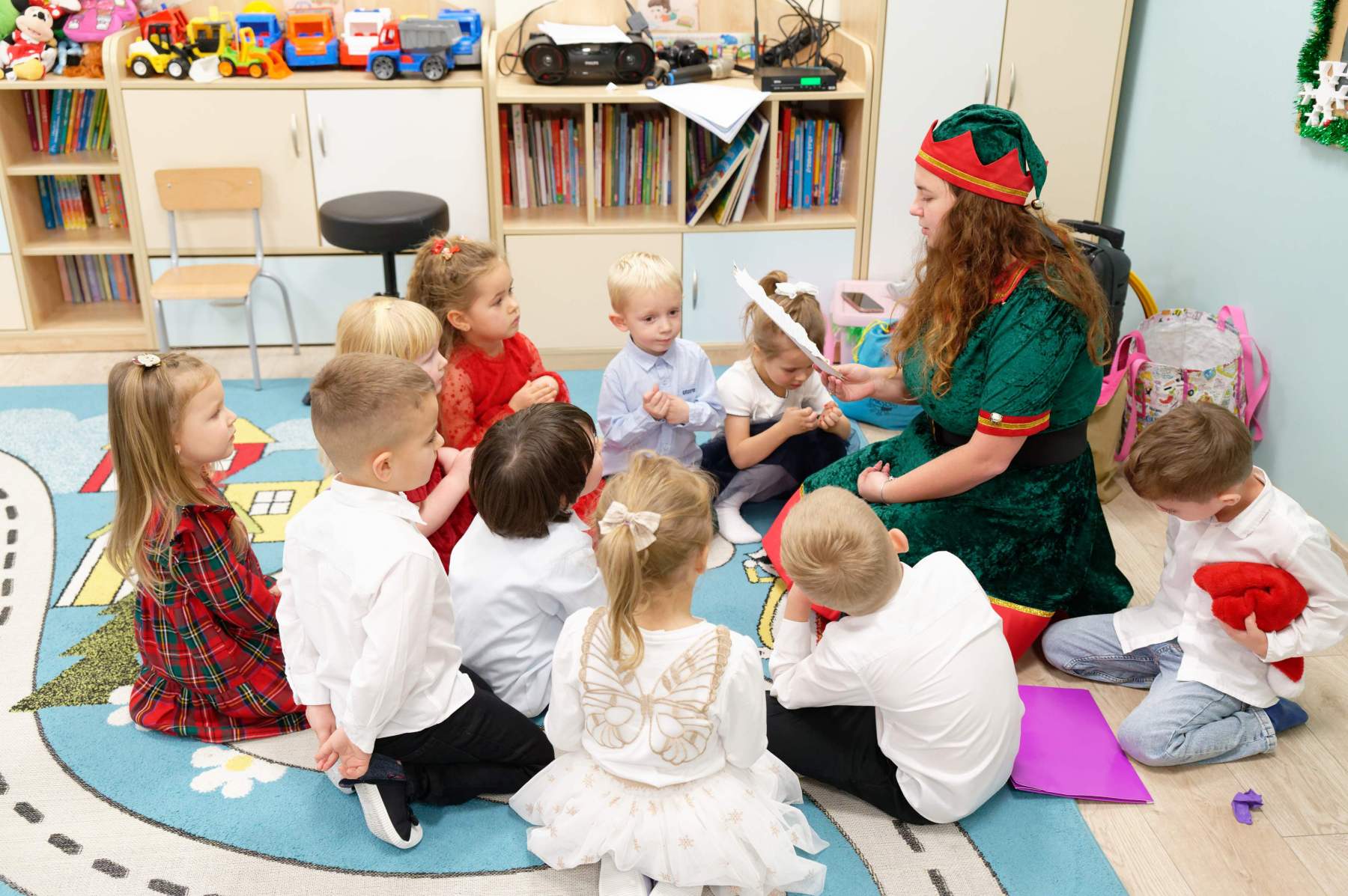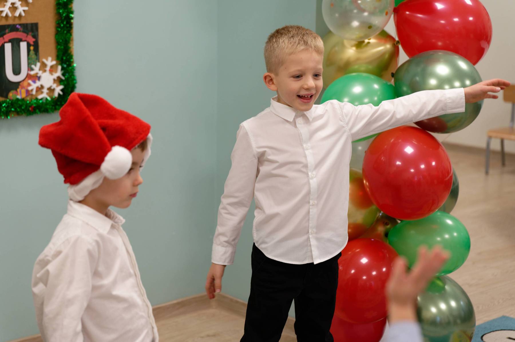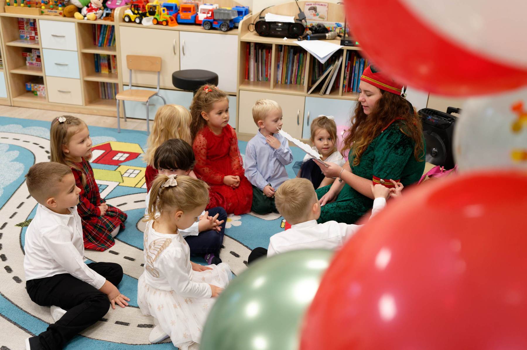 To był wyjątkowy dzień dla Nutek – pełen radości i świątecznej atmosfery. Do przedszkola zawitał bowiem upragniony gość – św. Mikołaj. Wizycie towarzyszyły także animacje. Dzieci brały udział w zabawach tanecznych, wspólnych pląsach i aktywnościach ruchowych, które sprawiły, że na twarzach wszystkich wychowanków pojawiły się szerokie uśmiechy.