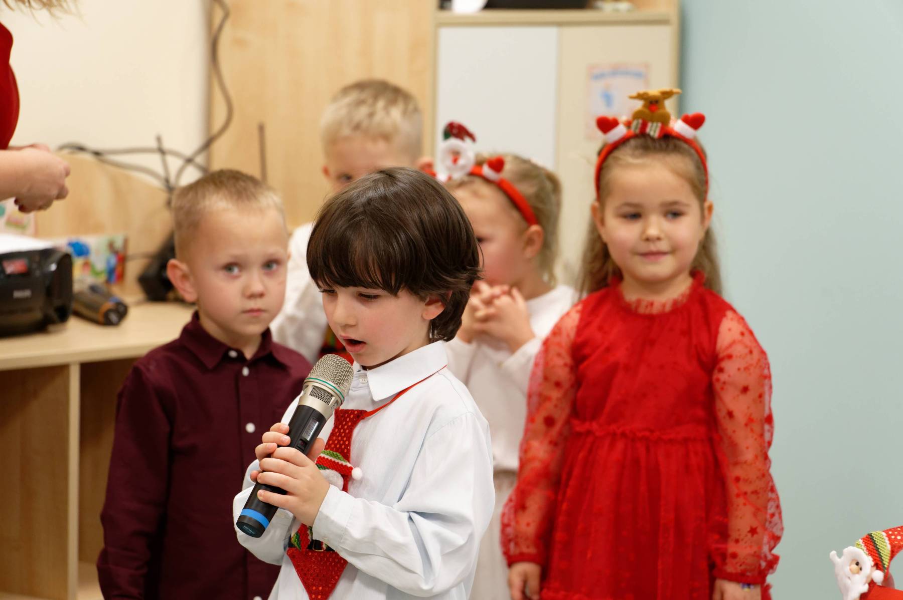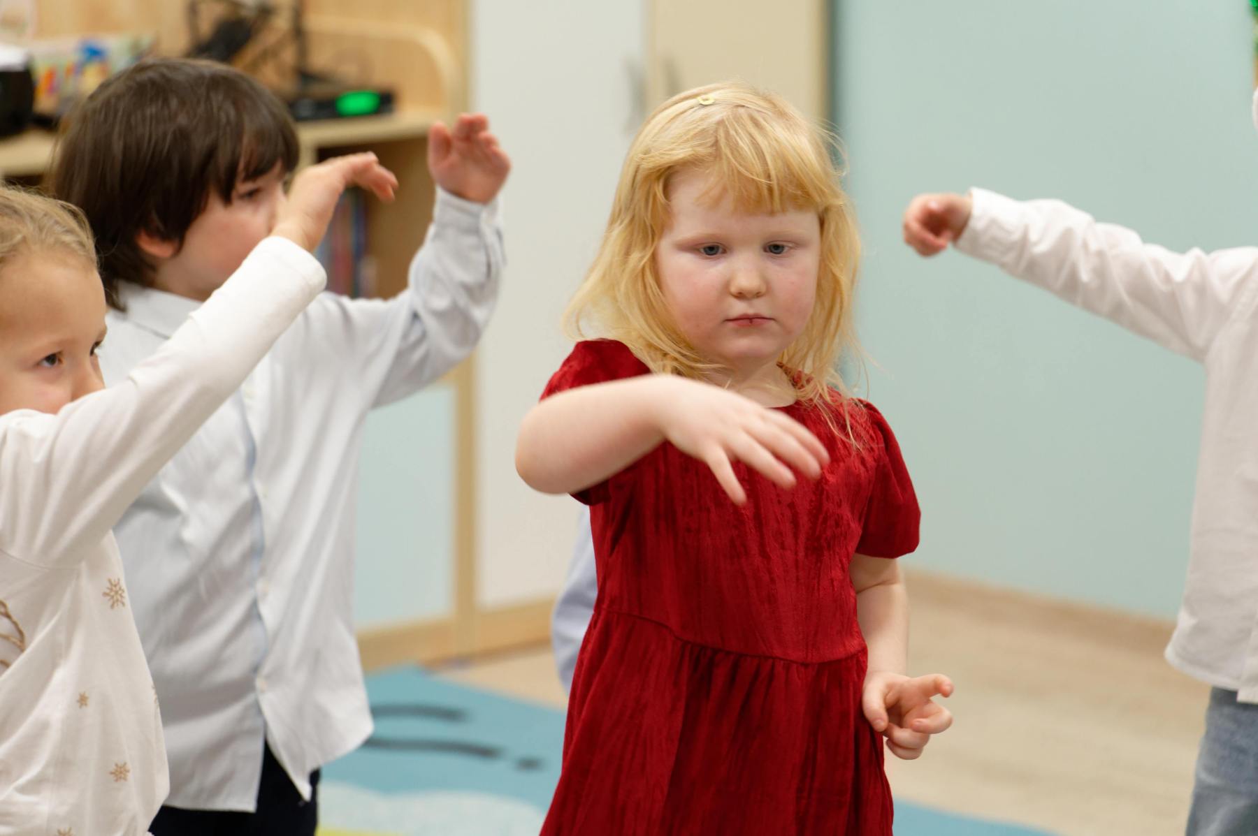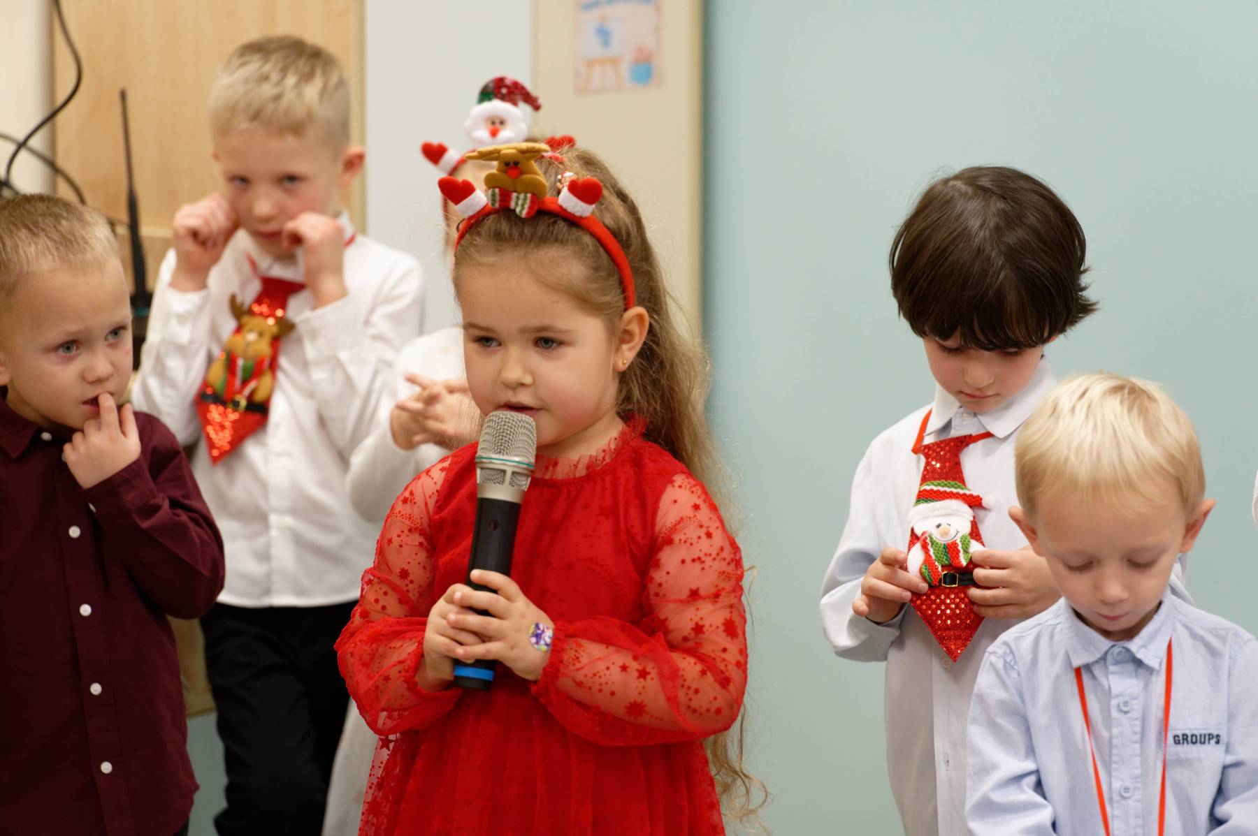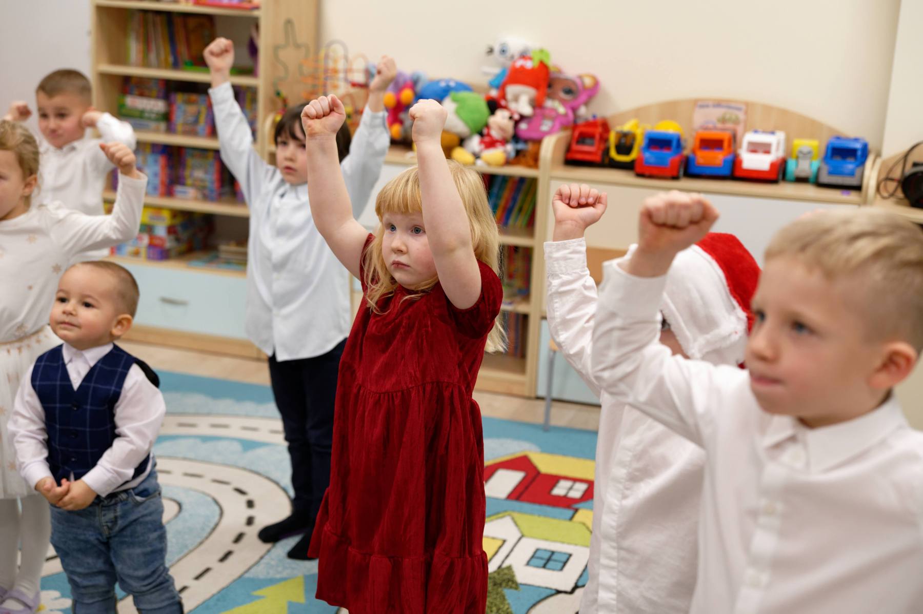 To był wyjątkowy dzień dla Nutek – pełen radości i świątecznej atmosfery. Do przedszkola zawitał bowiem upragniony gość – św. Mikołaj. Wizycie towarzyszyły także animacje. Dzieci brały udział w zabawach tanecznych, wspólnych pląsach i aktywnościach ruchowych, które sprawiły, że na twarzach wszystkich wychowanków pojawiły się szerokie uśmiechy.