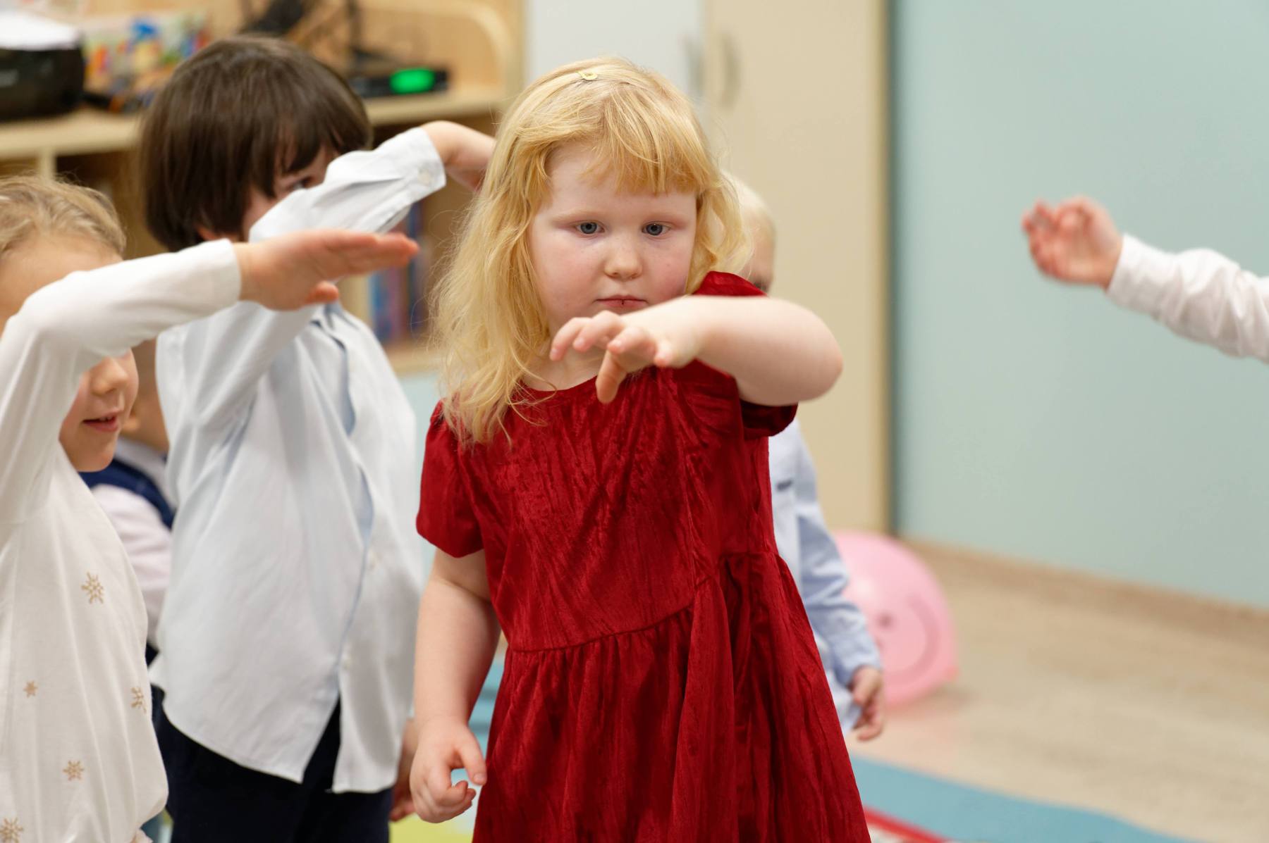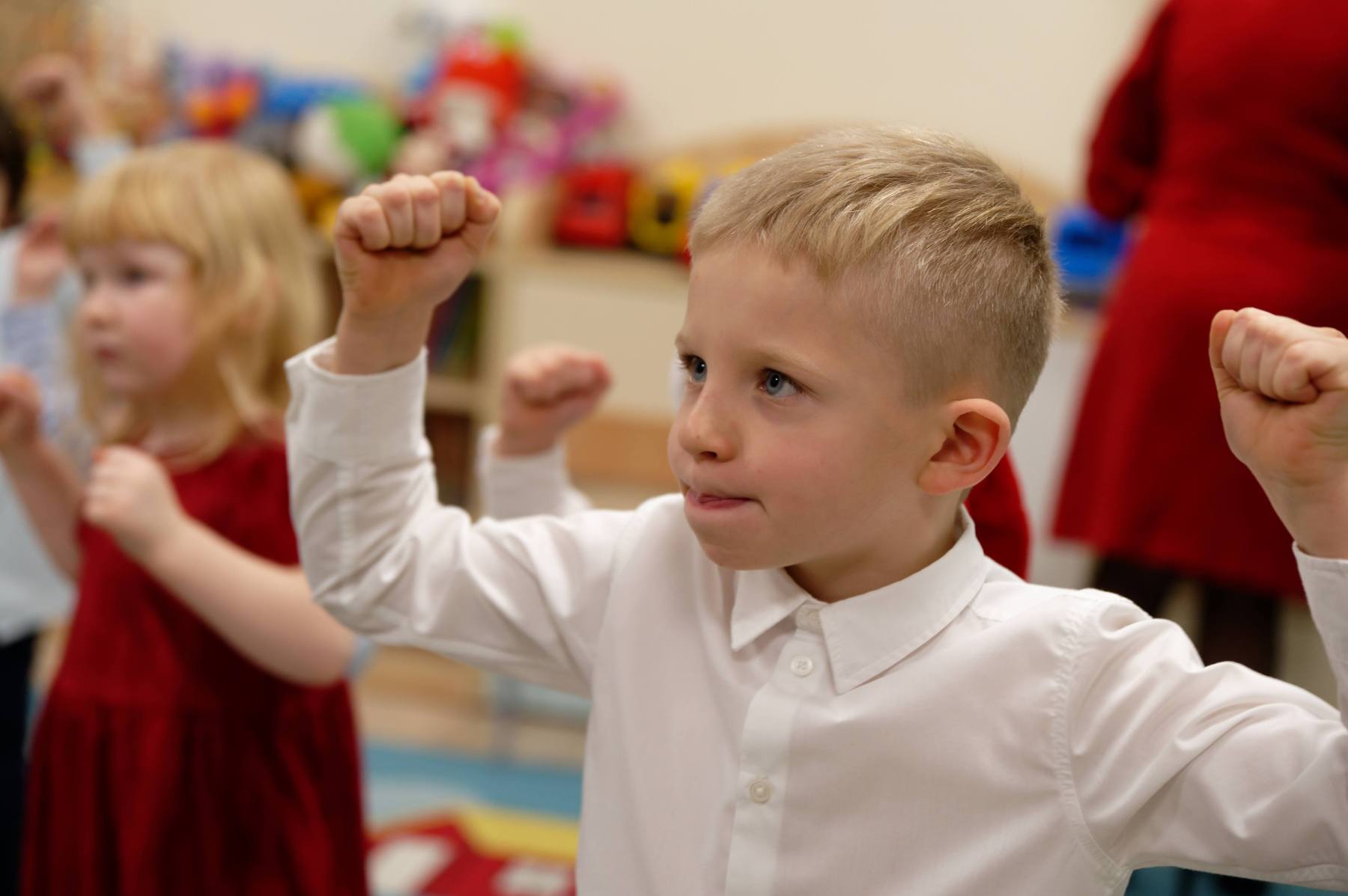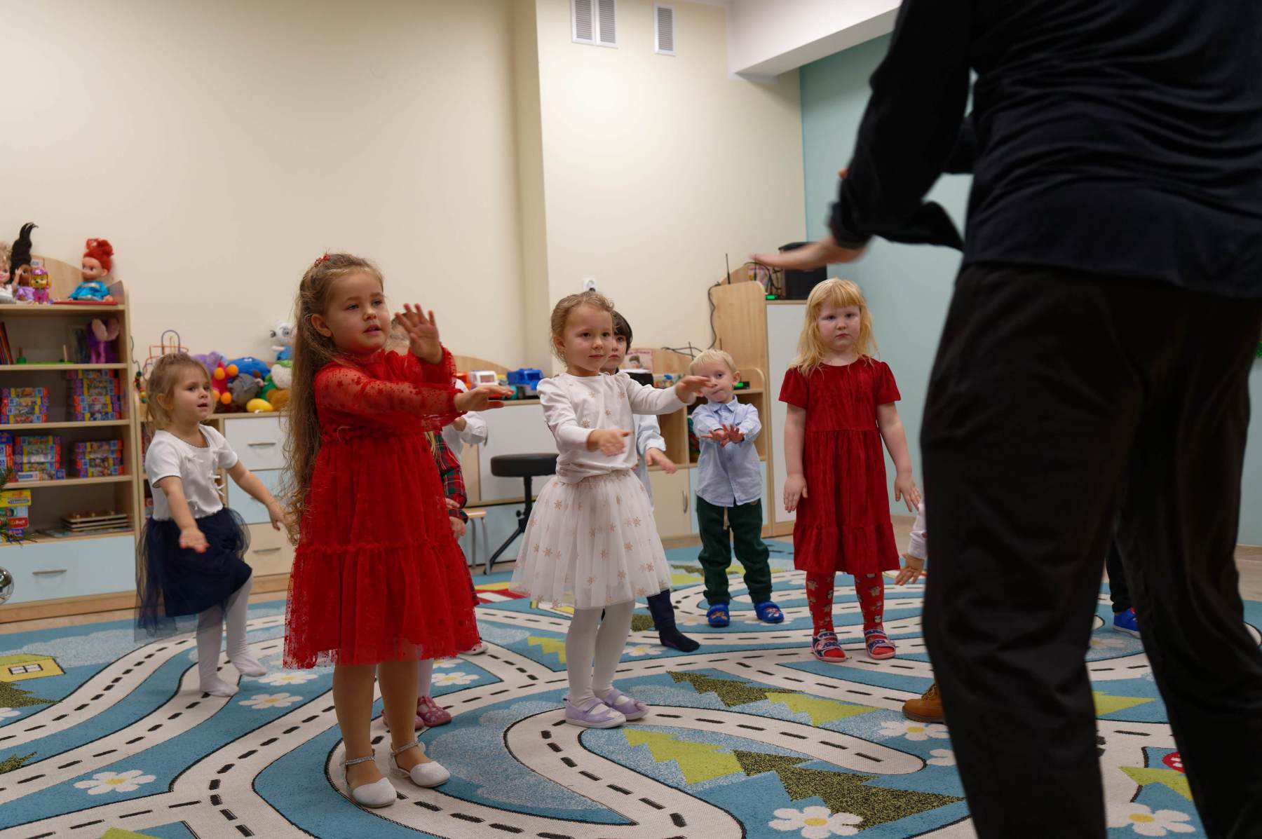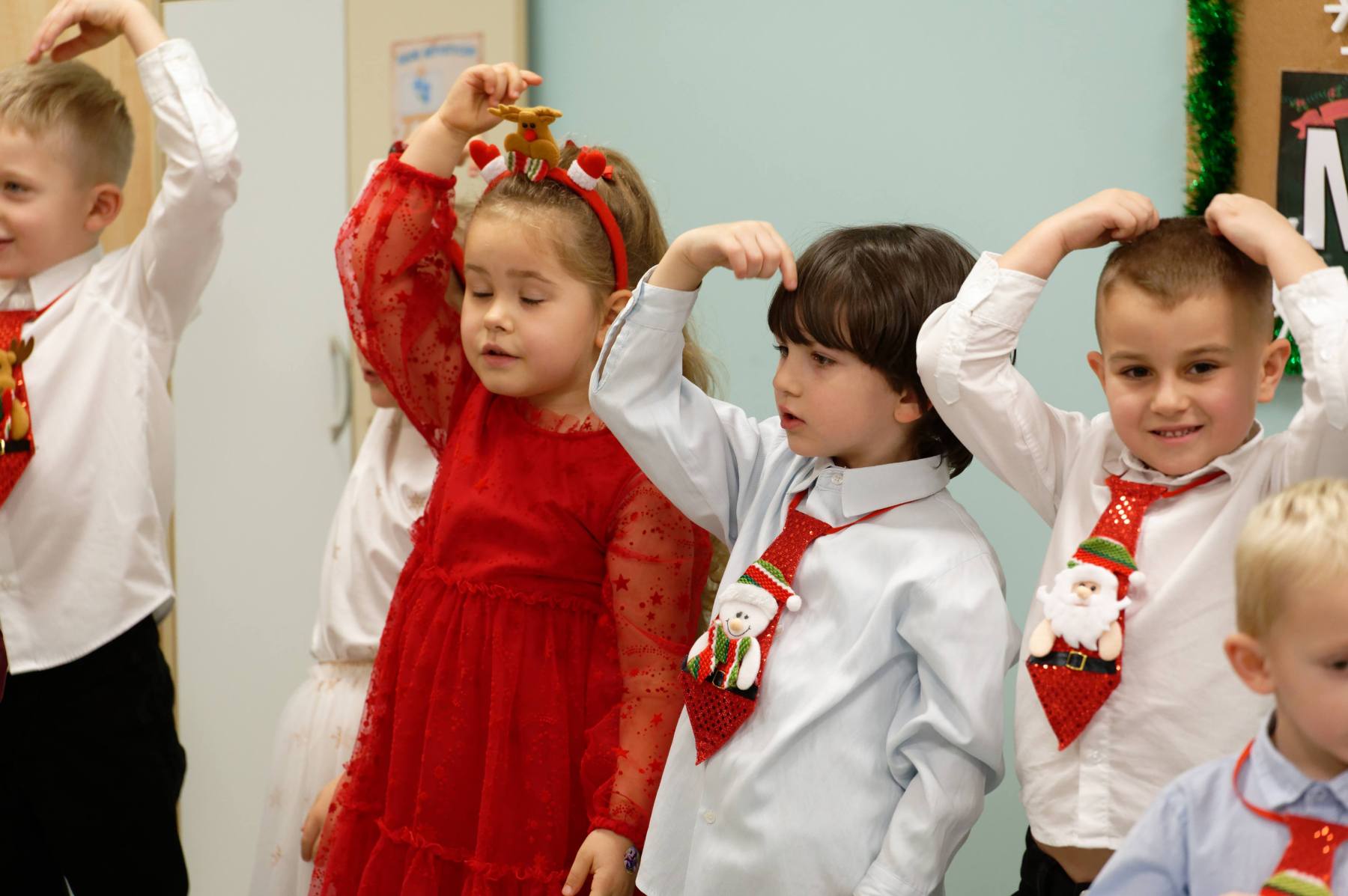 To był wyjątkowy dzień dla Nutek – pełen radości i świątecznej atmosfery. Do przedszkola zawitał bowiem upragniony gość – św. Mikołaj. Wizycie towarzyszyły także animacje. Dzieci brały udział w zabawach tanecznych, wspólnych pląsach i aktywnościach ruchowych, które sprawiły, że na twarzach wszystkich wychowanków pojawiły się szerokie uśmiechy.
